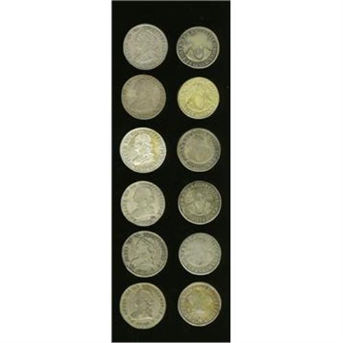 <B>Republic - Collection of 2 Reales, </B></I>a very useful group from this popular country comprising: KM14 1835GJ, nice Fine, KM18 1836FP, lightly cleaned VF, 1839MV, VG, 1840MV, Fine, and 1841MV, nice VG, KM21 1838ST, transposed legends, VG-F, holed and plugged but very rare, and KM33 1847GJ, nice VF+, 1848/7GJ, toned F-VF, 1849GJ, bold VF+, 1850GJ, Fine, 1851GJ, toned AVF and 1852GJ, nice AVF. <B>Sold as is, no return lot.</B></I>