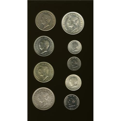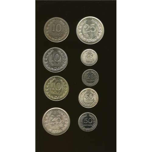 <B>Republic Collection of Minors, </B></I>nine coins, all brilliant UNC unless noted, featuring: 10 Centavos 1925 KM130, lustrous AU-UNC, typically soft strike, very scarce grade, 1951 and 1952, 25 Centavos 1943, 1944, 1953 and 1970, and 50 Centavos 1953 and 1970. <B>Sold as is, no return lot.</B></I>