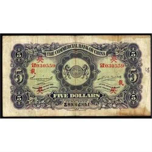 <style type="text/css"> body, td, th { font-family: Arial, Helvetica, sans-serif; font-size: 12px; color: #482424; margin: 0px; padding: 0px; } #header { background-image: url(http://www.bowersandmerena.com/ebay/images/template_v3_01.gif); clear: both; background-color: #590303; border-top-width: 2px; border-top-style: solid; border-top-color: #B38C4F; } #header #header_wrapper { height: 75px; clear: both; width: 800px; margin-right: auto; margin-left: auto; background-image: url(http://www.bowersandmerena.com/ebay/images/template_v3_03.gif); background-repeat: no-repeat; background-position: right; color: #F3EDCC; } #header #header_wrapper #header_logo { float: left; height: 75px; width: 444px; background-image: url(http://www.bowersandmerena.com/ebay/images/template_v3_02.gif); background-repeat: no-repeat; font-size: 10px; text-transform: capitalize; color: #B38C4F; } #header #header_wrapper #header_right { float: left; height: 75px; width: 356px; text-align: right; } #header #header_wrapper #header_right #headerLoginBtn { margin-bottom: 30px; } #header #header_wrapper #header_right input#txtSearch { color: #B49056; border: 1px solid #B49056; width: 175px; padding-top: 3px; padding-right: 3px; padding-bottom: 4px; padding-left: 3px; } #nav { height: 37px; background-image: url(http://www.bowersandmerena.com/ebay/images/template_v3_05.gif); clear: both; } #nav #nav_wrapper { height: 35px; width: 800px; margin-right: auto; margin-left: auto; border-left-width: 1px; border-left-style: solid; border-left-color: #B38C4F; } #nav #nav_wrapper a { padding-right: 15px; padding-left: 15px; border-right-width: 1px; border-right-style: solid; border-right-color: #B38C4F; height: 25px; padding-top: 10px; display: block; float: left; text-decoration: none; font-weight: bold; color: #5D0303; } #nav #nav_wrapper a:hover { color: #B38C4F; } #nav #nav_wrapper #search { float: right; padding-top: 7px; } #nav #nav_wrapper #search #txtSearch { font-family: Arial, Helvetica, sans-serif; font-size: 10px; text-transform: uppercase; color: #D2AE75; border: 1px solid #B38C4F; padding: 3px; } #content_bgd { background-image: url(http://www.bowersandmerena.com/ebay/images/template_v3_09.gif); background-repeat: repeat-y; background-position: center; padding-top: 15px; padding-bottom: 15px; background-color: #FBFBDB; } #content_wrapper { clear: both; height: auto; width: 800px; margin-right: auto; margin-left: auto; } .LotDetailWhite { line-height:normal; font-size:13px; font-family: arial,helvetica,sans-serif; color: White; font-weight: bold; } .LotDetailInformation { line-height:normal; font-size: 13px; font-family: arial,helvetica,sans-serif; } .LotDetailMessage { line-height:normal; font-size: 13px; font-family: arial,helvetica,sans-serif; color: red; } } tr.HeaderAuctionTitle td { color: #000000; font-weight: bold; padding: 2px; background-image: url(http://www.bowersandmerena.com/ebay/images/template_v3_05.gif); background-repeat: repeat-x; border-bottom-width: 1px; border-bottom-style: solid; border-bottom-color: #B38C4F; } table.AuctionSummary a, table.AuctionSummary a:link, table.AuctionSummary a:visited { color: #0000FF; text-decoration: none; } } td.tableHeaderLeft { border-left-width: 1px; border-left-style: solid; border-left-color: #B38C4F; } td.tableHeaderRight { border-right-width: 1px; border-right-style: solid; border-right-color: #B38C4F; } td.tableCellMiddle { border-left-width: 1px; border-left-style: solid; border-left-color: #B38C4F; border-right-width: 1px; border-right-style: solid; border-right-color: #B38C4F; padding: 5px; } tr.footer td { border-top-width: 1px; border-top-style: solid; border-top-color: #B38C4F; } </style> </head> <body> <div id="header"> <div id="header_wrapper"> <div id="header_logo"> </div> <div id="header_right"> </div> </div> </div> <div id="nav"> <div id="nav_wrapper"> <a href="http://www.bowersandmerena.com">Our eBayLive Auctions</a> <a href="#PaymentInfo">Payment Information</a> <a href="#ShippingInfo">Shipping Information</a> <a href="#About">About Bowers and Merena</a> </div> </div> <div id="content_bgd"> <div id="content_wrapper"> <table width="100%" border="0" cellpadding="5" cellspacing="0" class="AuctionSummary"> <tbody> <tr class="HeaderAuctionTitle" style="height: 25px;"> <td align="left" class="tableHeaderLeft" > </td> <td align="center" class="tableHeaderRight"> <span style="font-size: large;">Lot #56. China--Empire. Republic, Commercial Bank of China, 1932 Issue.</span> </td> </tr> <tr> <td colspan="3" class="tableCellMiddle"> Shanghai, P-14a, $5, 1932, VF condition.