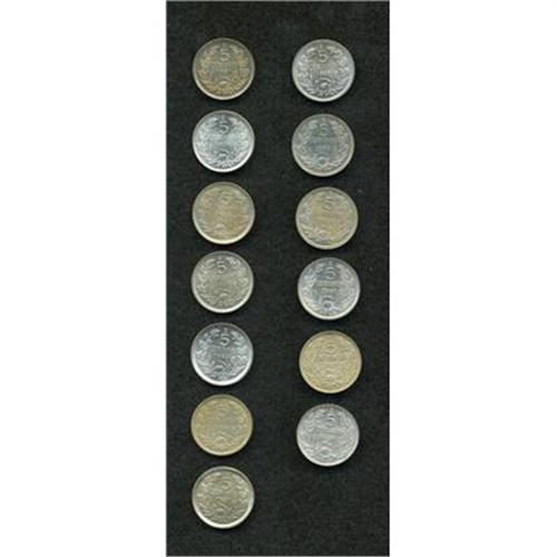 <B>Republic Copper-Nickel 5 Centavos Date Collection, </B></I>thirteen dates, all UNC, several unusually choice: 1920, 1921, 1922, 1923, 1925, 1926, 1927, 1928, 1933, very scarce date, 1934, 1936, 1937 and 1938. <B>Sold as is, no return lot.</B></I>