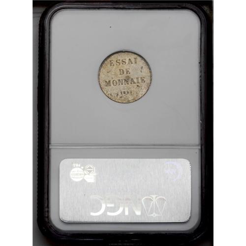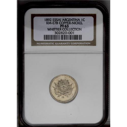 <B>Republic Copper-Nickel Pattern Centavo 1892 Pair, </B></I>KM-E7B, Proof 63 NGC, and KM-PE7 Piefort, Proof 64. Reverse design with ESSAI DE MONNAIE 1892.