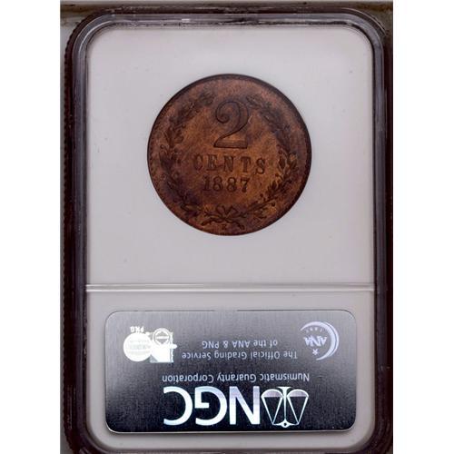 Republic Copper Pattern 2 Centavos 1887E, KM-Pn3, Proof Republic Copper Pattern 2 Centavos 1887E,