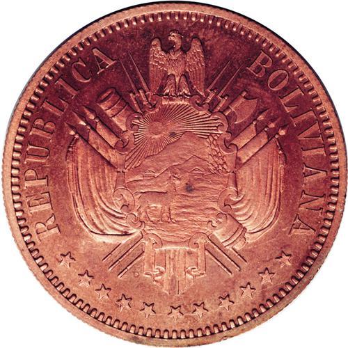 Republic Copper Pattern Boliviano 1868-E, KM-Pn33, reed Republic Copper Pattern Boliviano 1868-E,