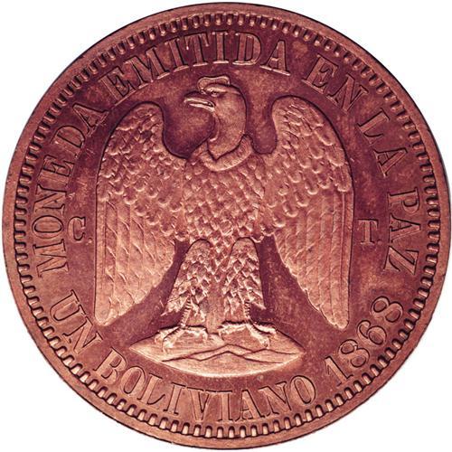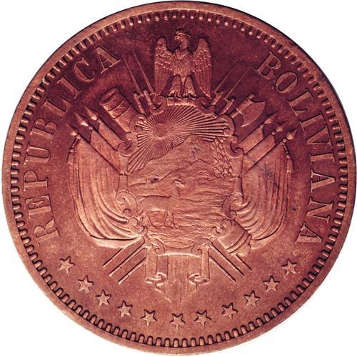 Republic Copper Pattern Boliviano 1868, KM-Pn23, plain Republic Copper Pattern Boliviano 1868-CT,