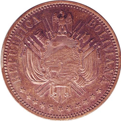 Republic Copper Pattern Boliviano 1868, KM-Pn28, plain Republic Copper Pattern Boliviano 1868,