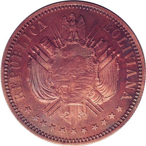 Republic Copper Pattern Boliviano 1868, KM-Pn32, reeded Republic Copper Pattern Boliviano 1868,