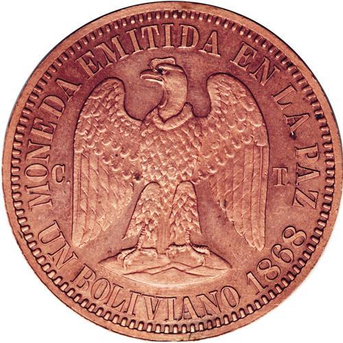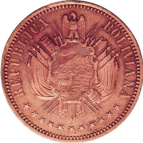 Republic Copper Piefort Pattern Boliviano 1868-CT, simi Republic Copper Piefort Pattern Boliviano 18
