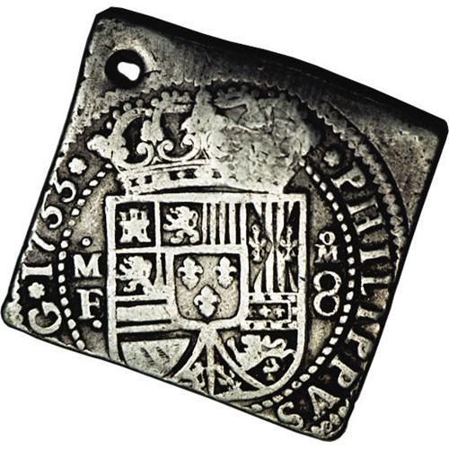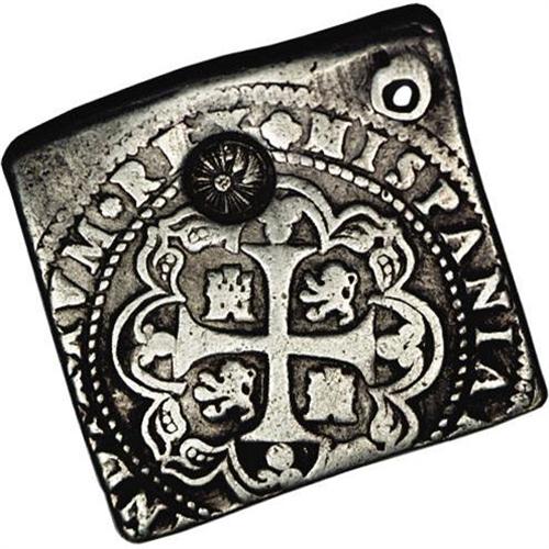 <B>Republic Counterstamp of 1839, </B></I>KM107, sun with rays over three volcanoes countermarked on a Mexico 8 Reales 1733 Klippe KM48. The host coin is a very nice VF but holed at one corner as usual, and the counterstamp is also VF. An attractive example of this transitional coinage.