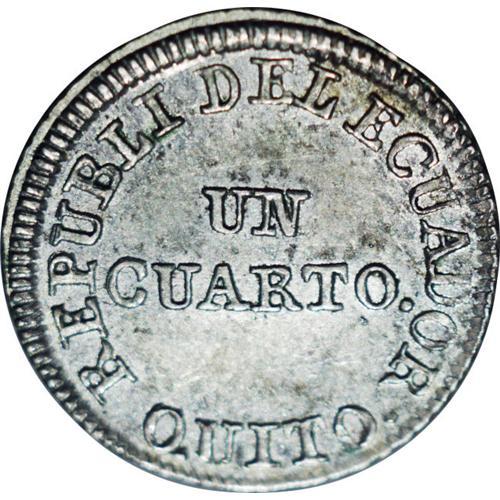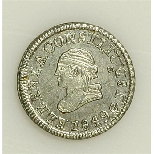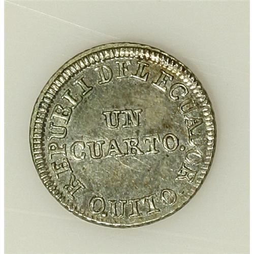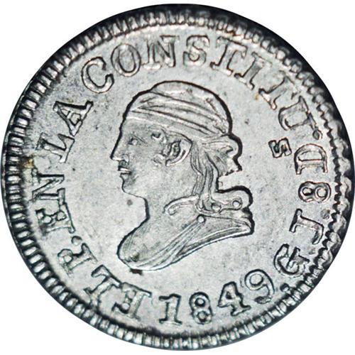 <B>Republic Cuarto (1/4 Real) 1849-GJ, </B></I>KM36, superb toned AU-UNC, a gorgeous example with razor sharp details and immediate eye appeal.<BR><I>From the Shinholser Collection</B></I><BR><BR><b>Shipping:</b> Coin/Currency (<a target="_blank" href="http://www.heritageauctions.com/common/shipping.php">view shipping information</a>)
