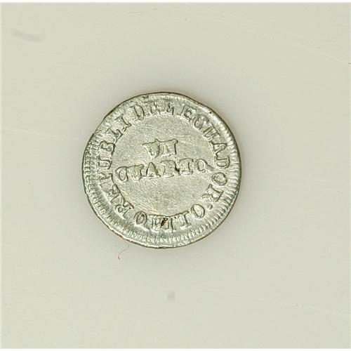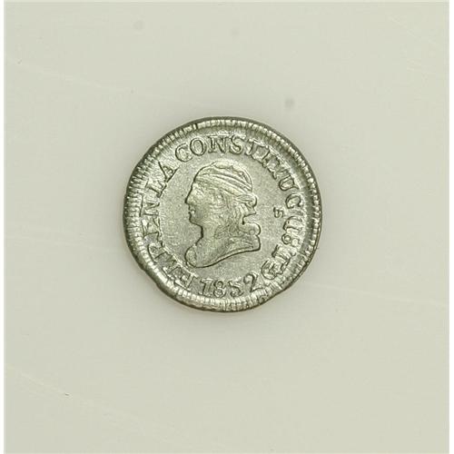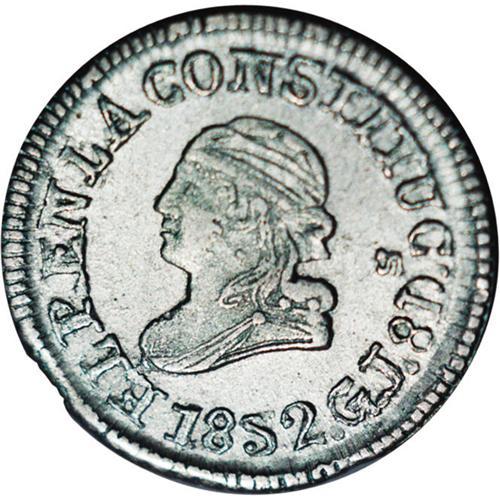 <B>Republic Cuarto (1/4 Real) 1852-GJ, </B></I>KM36, lightly cleaned AU, very bold features with original luster in the legends.<BR><I>From the Shinholser Collection</B></I><BR><BR><b>Shipping:</b> Coin/Currency (<a target="_blank" href="http://www.heritageauctions.com/common/shipping.php">view shipping information</a>)
