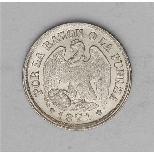 <B>Republic Decimo 1871, </B></I>KM136.2, gem brilliant UNC, very rare grade for this low-mintage date (91,000.)