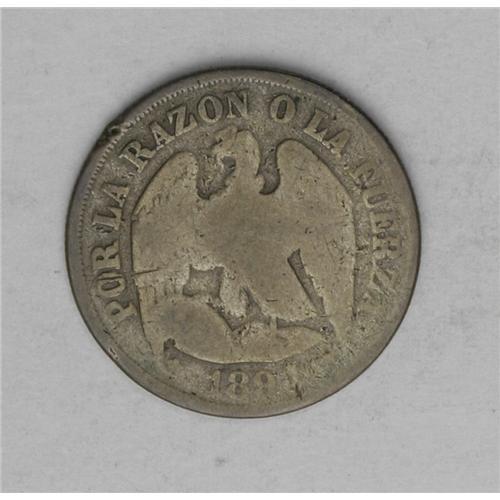 <B>Republic Decimo 1891, </B></I>KM136.3, worn AG-Good, but a very rare date for the 2.5 gram standard type. This example weighs 2.32 grams.