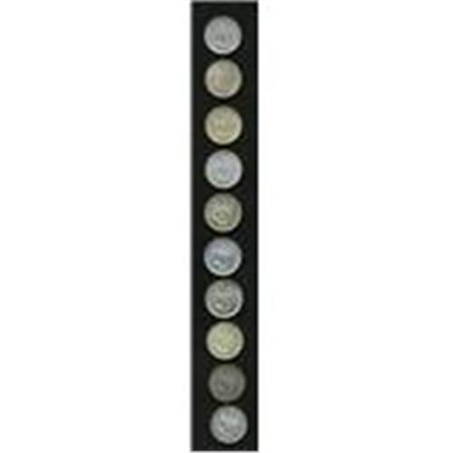 <B>Republic Decimo Date Collection, </B></I>KM136.3, ten different dates, all UNC unless noted otherwise: 1879/8, cleaned XF, 1881, 1882, variety with repunched 2, 1883, 1884, 1885, 1887, 1892/82, 1893, toned AU and 1894. <B>Sold as is, no return lot.</B></I>