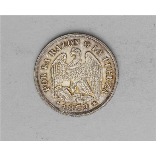 <B>Republic Decimo - Three Early Dates, </B></I>KM136.2, 1869, toned AU, very sharp details, 1870, brilliant UNC and 1872, superb lightly toned UNC.