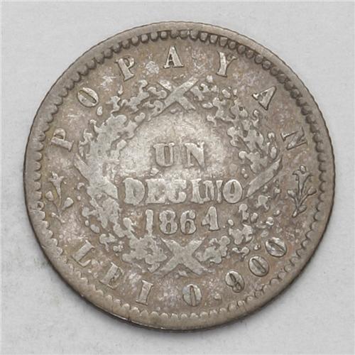 Republic Decimo - Two Types, KM145.2, 1864 Popayan, nic Republic Decimo - Two Types,