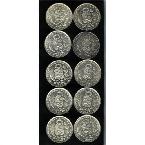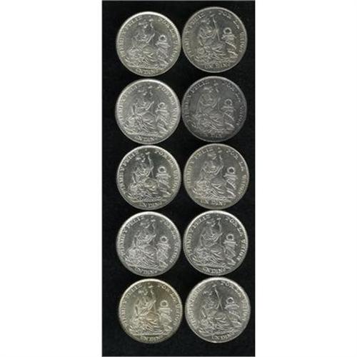 <B>Republic Dinero Date Run, </B></I>KM204, ten coins, all UNC including: 1890-TF, 1891-TF, 1892-TF, 1893-TF, 1895-TF, 1896-F, 1896-TF, 1897-JF, 1897-VN and 1898-JF. A nice group of this silver type. <B>Sold as is, no return lot.</B></I>