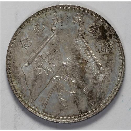 <B>Republic Dollar ND (1923), </B></I>KM-677, prooflike UNC, uneven obverse toning, possible not original, hairlines in the exposed obverse fields. Despite the mentioned blemishes, an attractive example of this type featuring President Tsao Kun.<BR><I>From the Monedas Oro Collection</B></I><BR><BR><b>Shipping:</b> Coin/Currency (<a target="_blank" href="http://www.heritageauctions.com/common/shipping.php">view shipping information</a>)
