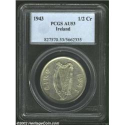 Republic Halfcrown 1943, KM16, AU53 PCGS, still quite lustrous with just a few scattered surface marks. To be able to choose from three 1943 Irish Halfcrowns is an opportunity that is not likely to be repeated anytime soon. Important notice: We expect to be auctioning lots at the rate of 200-250 per hour. Sometimes eBay Premier live bid software cannot keep up with that pace, so we strongly recommend that you place a realistic proxy bid now as insurance to avoid disappointment. Also please note that all Heritage/CAA lots purchased through eBay Premier carry a 20% Buyer's Premium. Please make sure you read the Terms and Conditions.