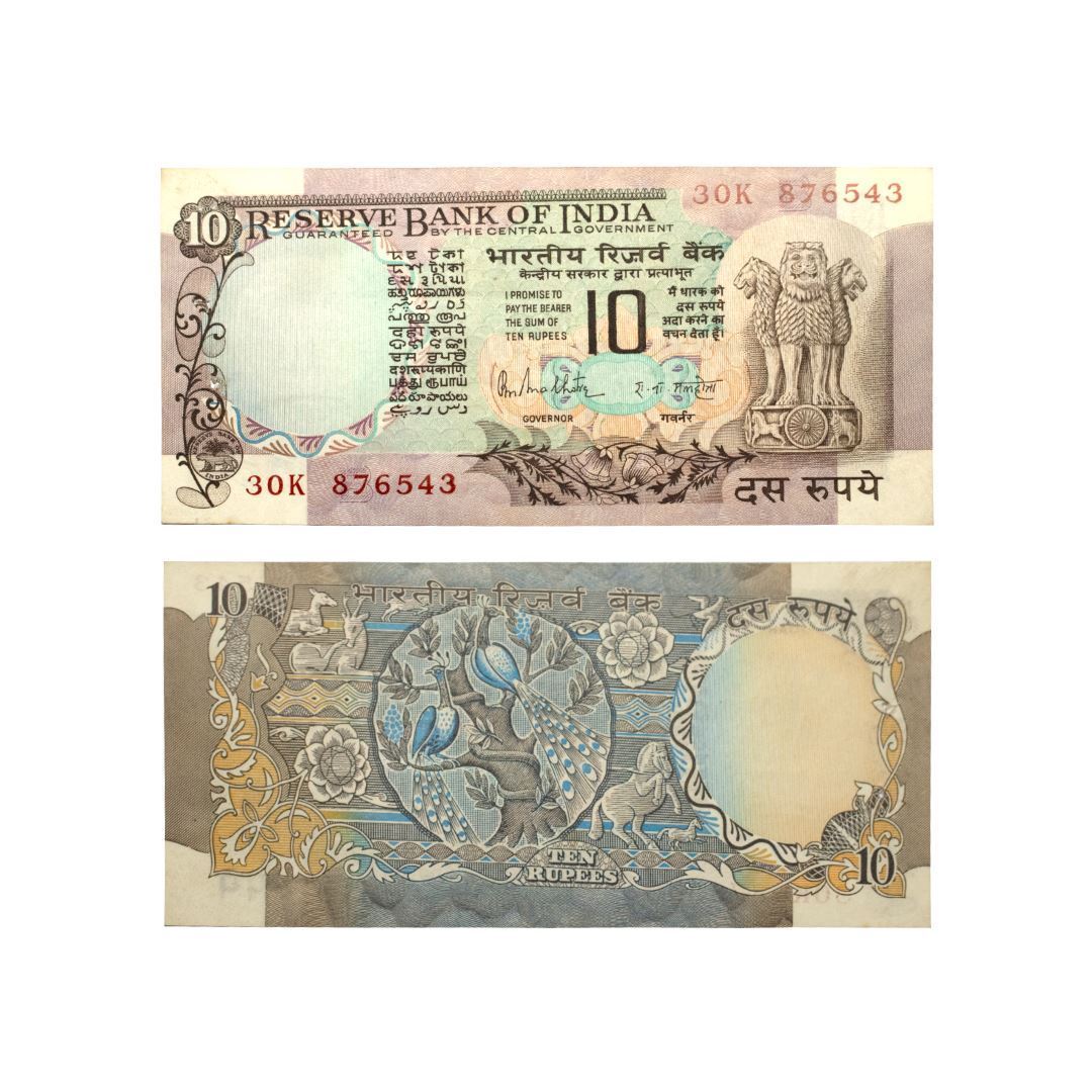 Republic India, 10 Rupees, Peacock series, R. N. Malhotra, Fancy Number, 30K 876543.