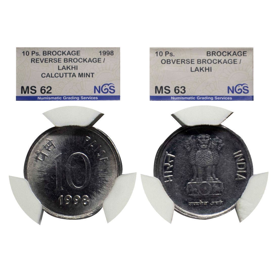 Republic India, 10 paisa, 2 coin set, Reverse and Obverse Brockage set, Graded by NGS as MS62 and MS63, Extremely Rare as a set.
