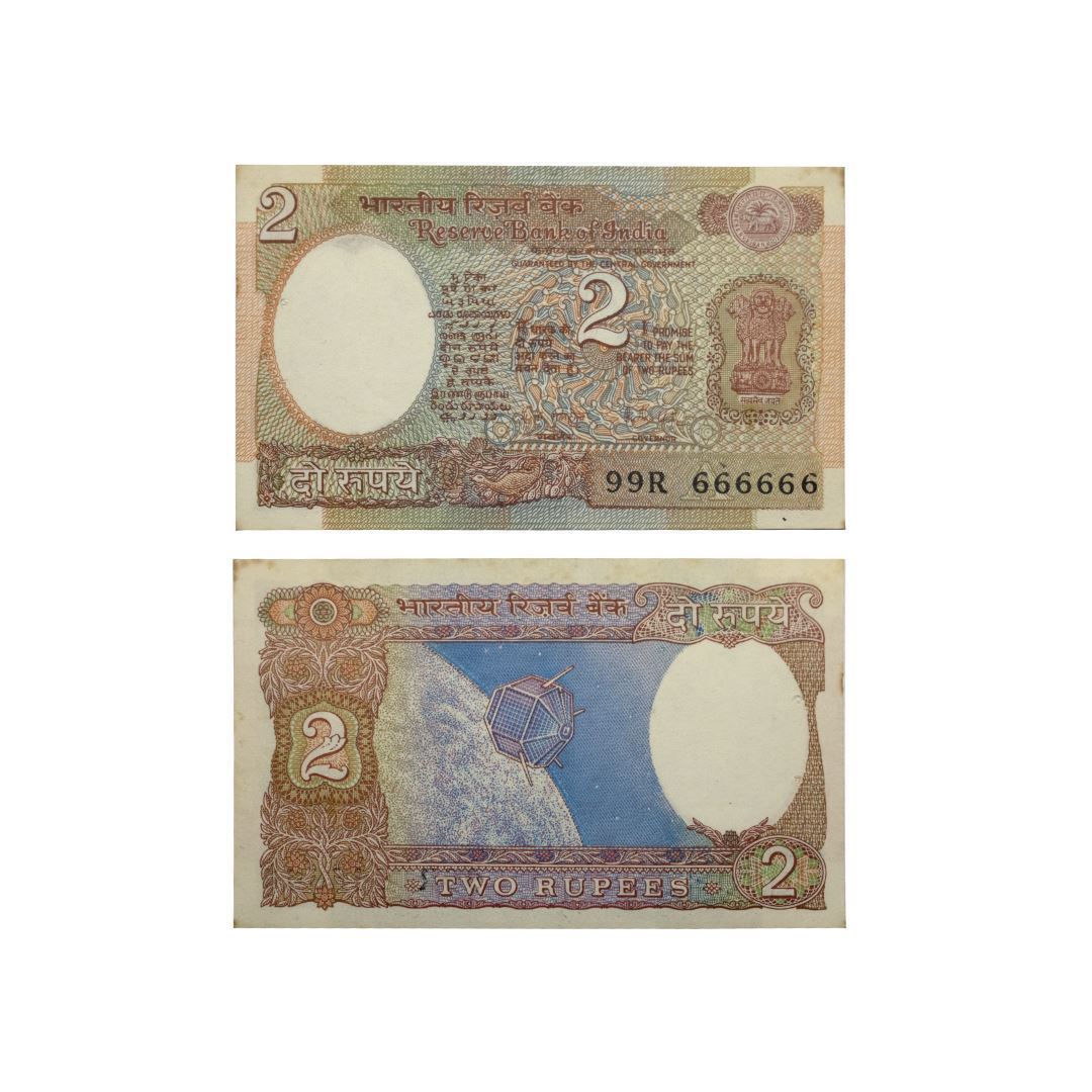 Republic India, 2 Rupees, Satellite series, R. N. Malhotra, Fancy Number, 99R 666666.