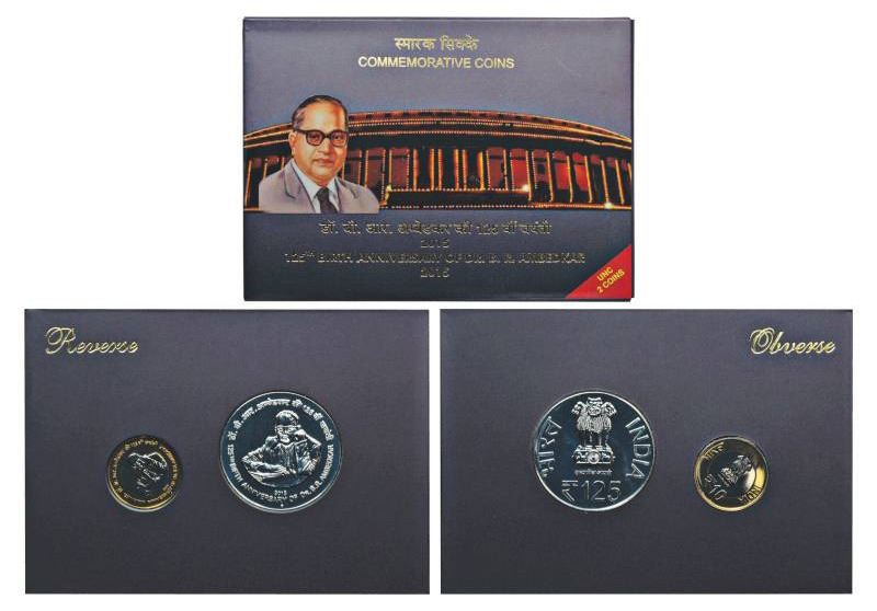 2015, 125th Birth Anniversary of Dr. B.R. Ambedkar, UNC set of 2 coins, 125 rupees and 10 rupees, Mumbai mint, in original mint packing.