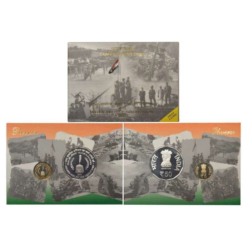 2015, Golden Jubilee of 1965 operations, Proof set of 2 coins, 50 rupees and 5 rupees, Mumbai mint, in original mint packing.
