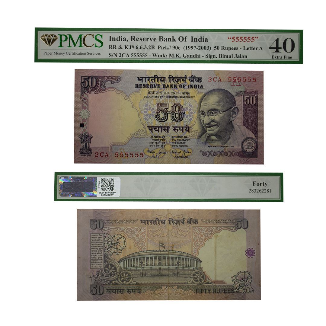 Republic India, 50 Rupees, Fancy Number- (2CA)- 555555, signed by- Bimal Jalan, Graded by PMCS as 40