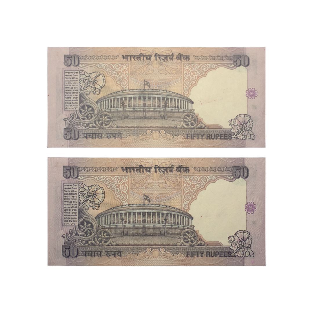 Republic India, 50 Rupees, Gandhi Series, Vimal Jalan, Ink error, 7 BW 800941 & 800942.