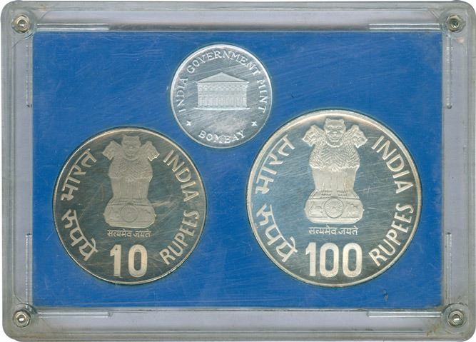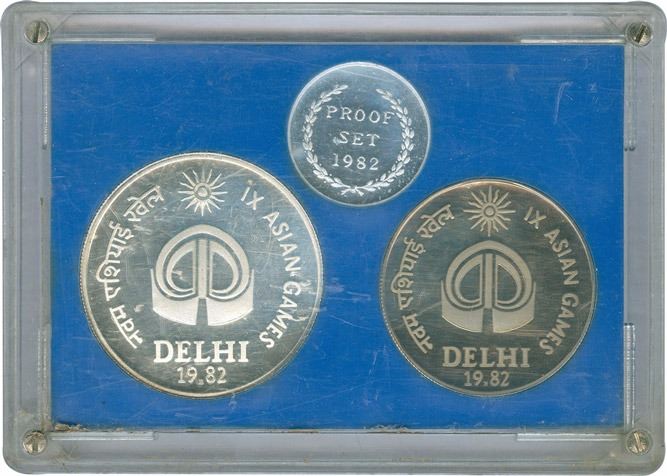 1982, Proof Set, IX-Asian Games, 100 Rupee, 10 Rupee, Bombay Mint, (RB # 92), intact in cassette without certificate and cover packing