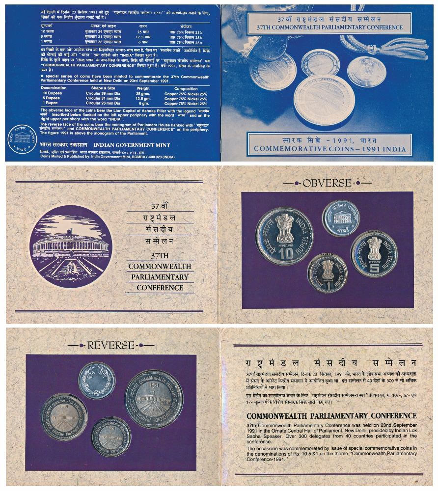 1991 Proof Set, 37th Commonwealth Parliamentary Conference, set of 3, Rupee 1 to 10. In immaculate condition, within original packaging. (3)