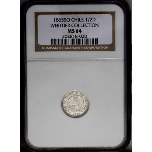 <B>Republic Medio Decimo 1865, </B></I>KM137.1, MS64 NGC, brilliant and very attractive, reportedly the finest known of this elusive date.
