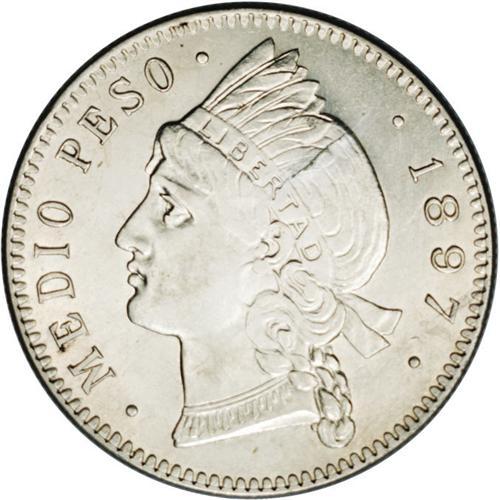 Republic Medio Peso 1897A, KM15, MS61 NGC, an exception Republic Medio Peso 1897A,