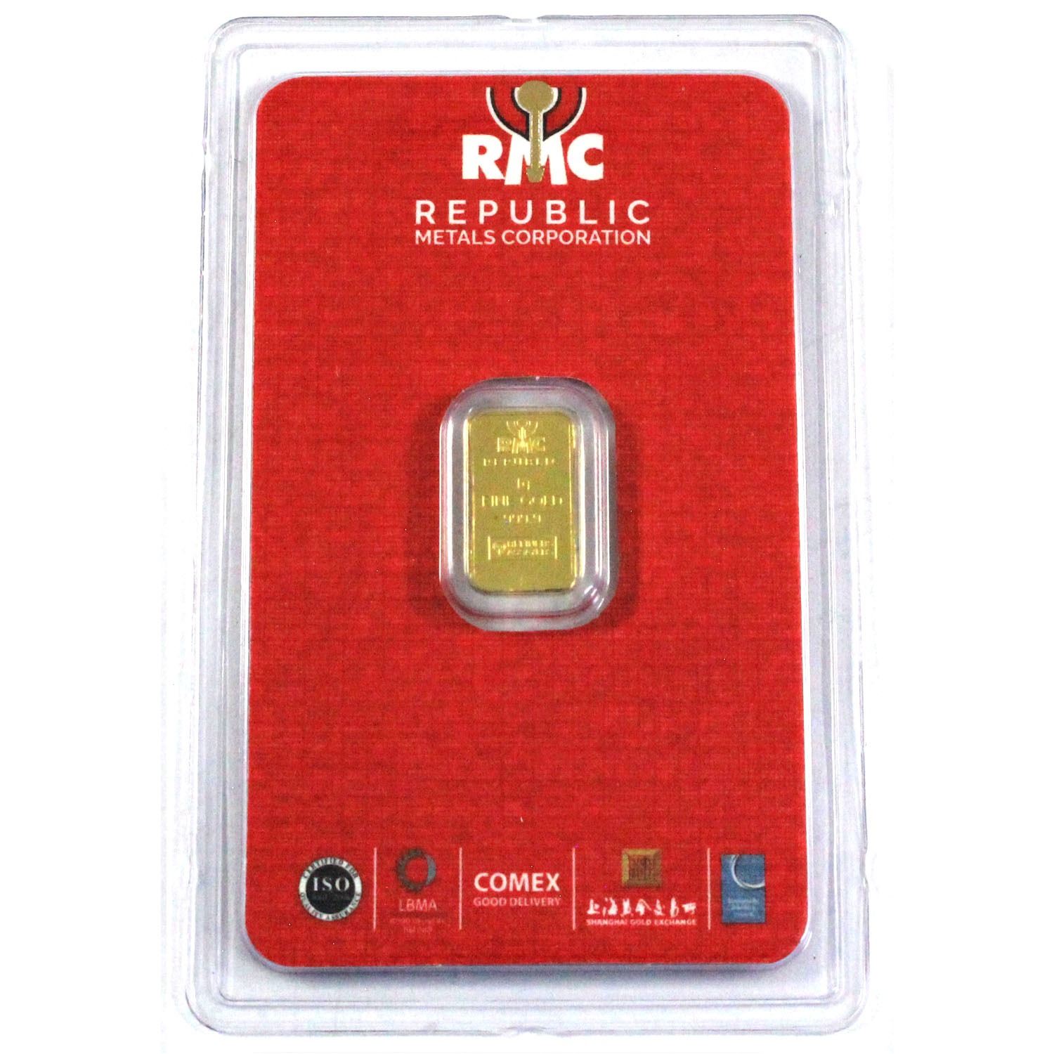 Republic Metals Corporation 1 Gram .9999 Fine Gold Bar in Hard Plastic Certificate Holder. (TAX Exempt)