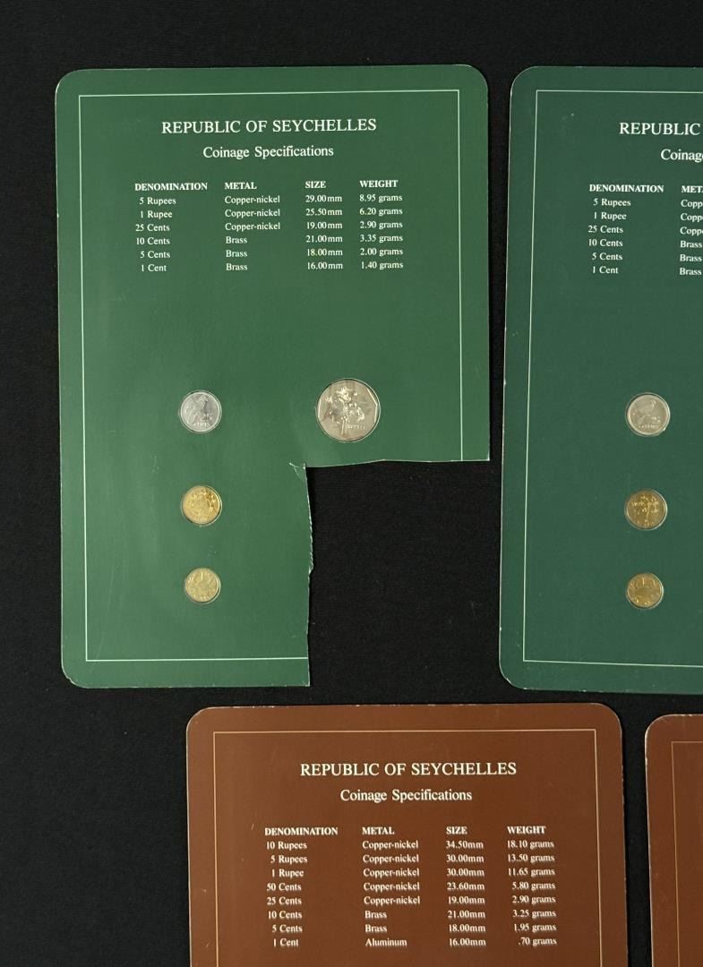 Seven Coins Sets Of All Nations Republic Of Seychelles type sets. None are complete.