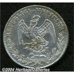 <B>Republic One Real 1832 Do-RM/RL</B></I> KM372, sharply struck AU-UNC. <BR><BR><B>Important notice:</B> Heritage usually auctions material at the rate of 200-250 lots per hour. On some occasions eBay Live bid software or the Internet may not be able to keep up with the pace of the auction. We recommend placing a realistic absentee bid now as insurance to avoid disappointment. Occasionally the auctioneer may eliminate or reject an eBay Live bid, and the auctioneer may also reopen a lot after the close of the eBay live bidding (usually because we missed an audience bid), and may reject your bid even if it shows you as the winning bidder. By bidding via eBay Live, you agree that Heritage may award the lot to another bidder at its sole discretion under the circumstances described above or any other reasonable circumstances. Since eBay bids are not shown to us until we open the lot on the floor, we treat those bids just like floor bids. In most cases the floor responds before the eBay bid is presented to us, due to Internet lag time, so for consistency we have made it a policy that floor bids are always considered first over tie eBay live bids. Also please note that all Heritage lots purchased through eBay Live carry a 20% Buyer's Premium. Please make sure you read the Terms and Conditions before you bid.