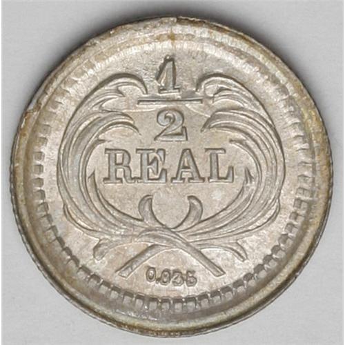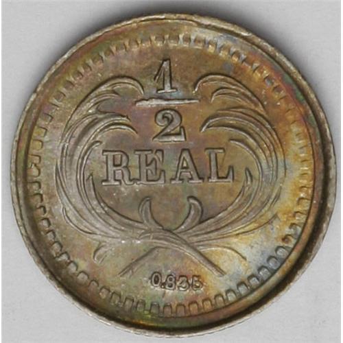 <B>Republic - Pair of 1/2 Reals, </B></I>KM147a.1, 1879 wide date, toned UNC, and 1879 narrow date, superb gem UNC, beautifully toned.
