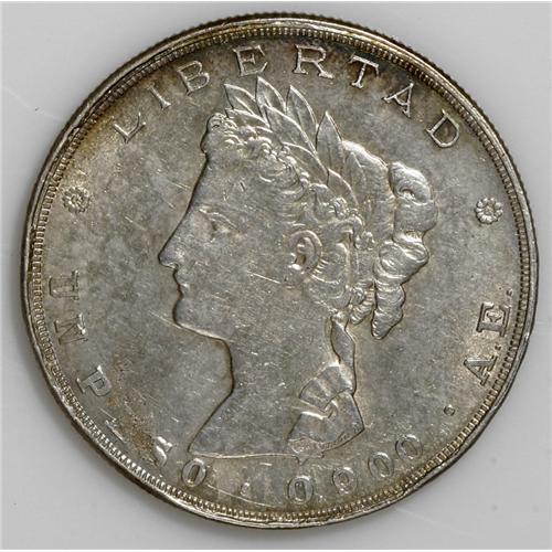 <B>Republic - Pair of 1882-AE Pesos, </B></I>KM208, lightly toned XF-AU with a noticeable flan flaw on the B of REPUBLICA and lustrous XF-AU, small scratches on the bust. <B>Sold as is, no return lot.</B></I>