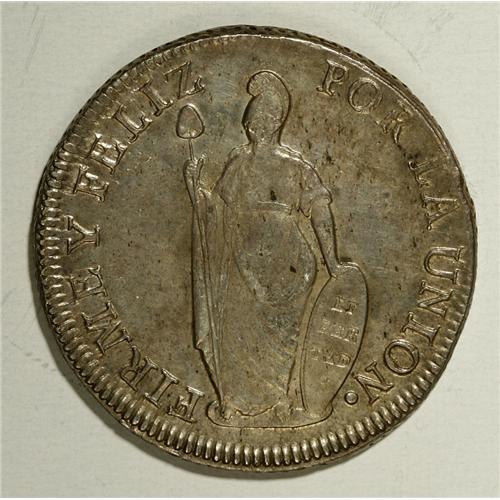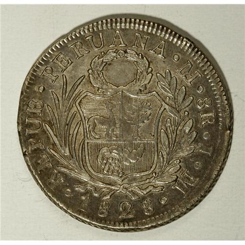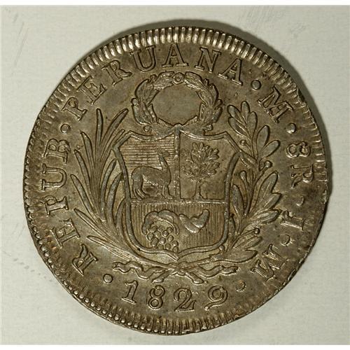 <B>Republic - Pair of 8 Reales, </B></I>KM142.3, large Libertad reverse, 1828-JM Lima, toned XF-AU, rim nick at 6 o'clock on the reverse, and 1829-JM Lima, toned AU, a choice and fully original coin, one small rim bruise at 2 o'clock on the obverse.<BR><BR><b>Shipping:</b> Coin/Currency (<a target="_blank" href="http://www.heritageauctions.com/common/shipping.php">view shipping information</a>)
