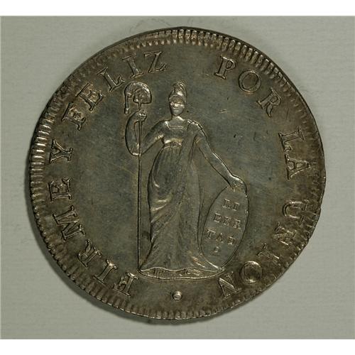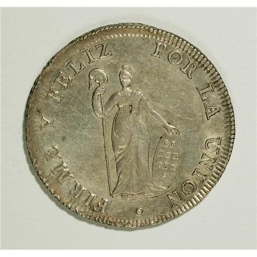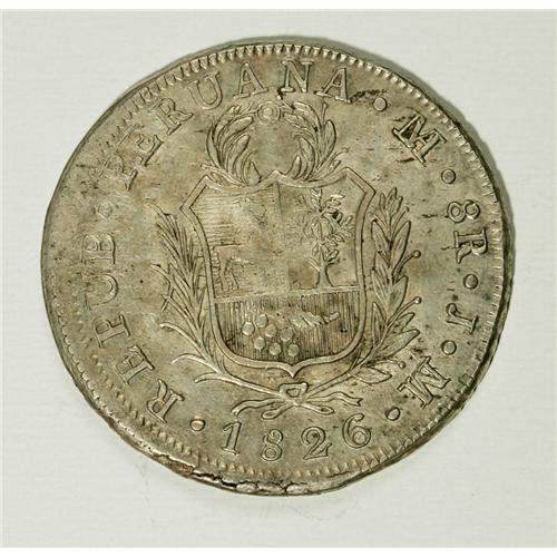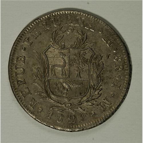 <B>Republic - Pair of Early 8 Reales, </B></I>KM142.1, 1826-JM Lima, toned XF-AU, very nice details, and 1827-JM Lima, lightly toned AU-UNC, very attractive. Both coins have the small Libertad reverse.<BR><BR><b>Shipping:</b> Coin/Currency (<a target="_blank" href="http://www.heritageauctions.com/common/shipping.php">view shipping information</a>)