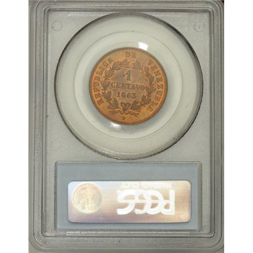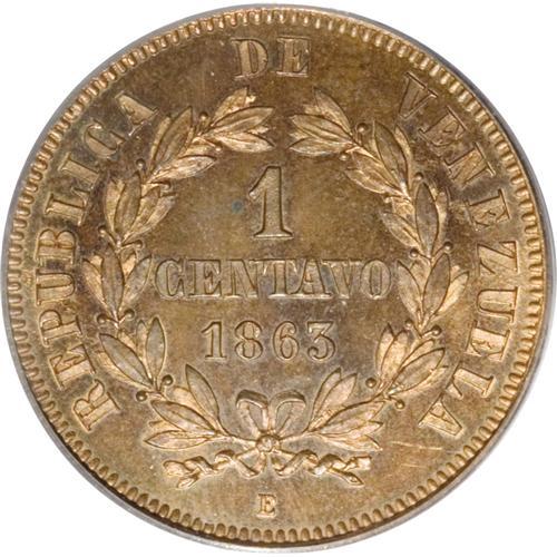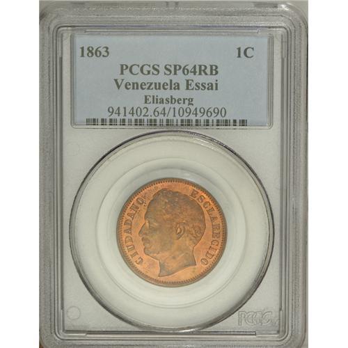 <B>Republic Pattern Centavo 1863-E, </B></I>KM-E1, Specimen 64 Red & Brown PCGS Eliasberg, fully prooflike surfaces and fiery red and orange luster.<BR><I>From the Louis E. Eliasberg, Sr. Collection</B></I><BR><BR><b>Shipping:</b> Coin/Currency (<a target="_blank" href="http://www.heritageauctions.com/common/shipping.php">view shipping information</a>)