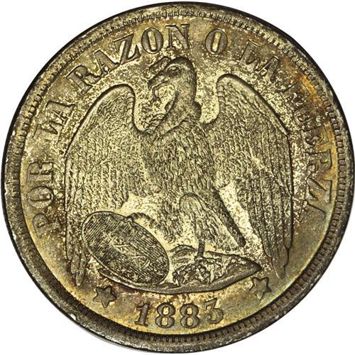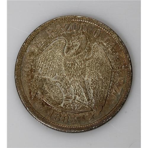 Republic Peso 1883 Flat Top 3, KM142.3, coin alignment,