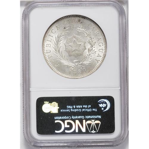 Republic Peso 1889, KM5, MS63 NGC, fully lustrous with