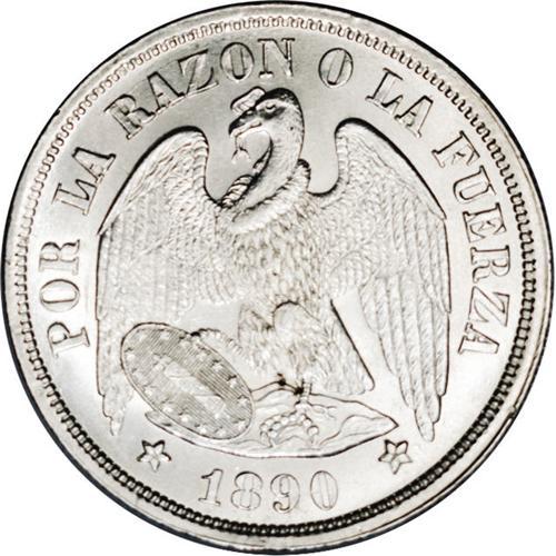 <B>Republic Peso 1890, 9/8 Overdate, </B></I>KM142.1, MS64 NGC, a superb example with frosty white luster and an extremely clear overdate.