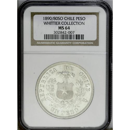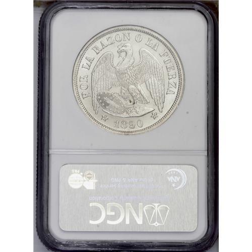 Republic Peso 1890, 9/8 Overdate, KM142.1, MS64 NGC, a Republic Peso 1890, 9/8 Overdate,