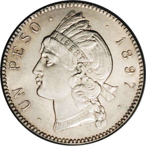 Republic Peso 1897A, KM16, MS62 NGC, a superb lightly t Republic Peso 1897A,