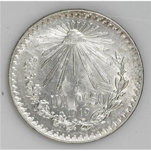 <B>Estados Unidos silver Peso 1919,</B></I> KM-454, nice AU-UNC, sharp details and full white mint luster, faint hairlines in the obverse field, very scarce grade.<BR><BR><b>Shipping:</b> Coin/Currency (<a target="_blank" href="http://www.heritageauctions.com/common/shipping.php">view shipping information</a>)