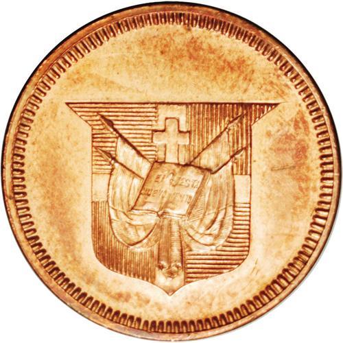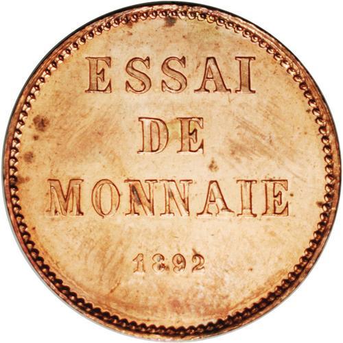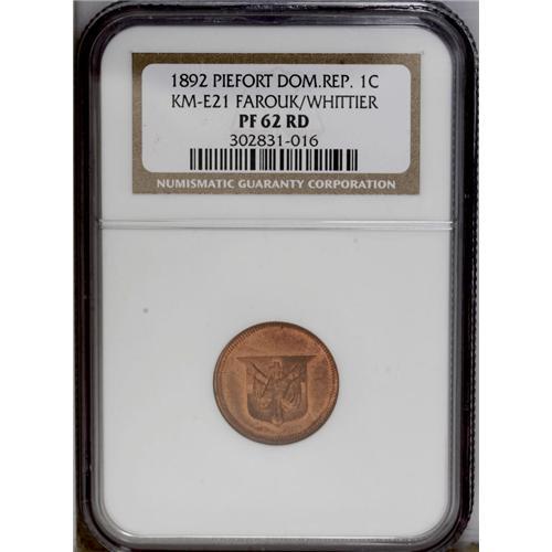 <B>Republic Piefort Pattern Centavo 1892 Copper, </B></I>KM-E21, Proof 62 NGC Red, mirror surfaces with abundant orange mint luster. Rare and ex-Farouk.