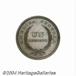 Republic. Piefort Pattern Centavo 1892, this previously unlisted bronze pattern is 2 mm thick and weighs 7.69 grams compared to the business strikes of this date which are 1 mm thick and weigh approximately 4.7 grams. This an exciting discovery as this series has been heavily researched in the past. Glossy brown AU-UNC with exceptionally well struck details, and just a few minor obverse surface marks. For comparison purposes we have also included an example of the business strike of the 1892 Centavo KM108, choice UNC with considerable mint red and weighing 4.73 grams.From the Morris Geiger Collection. 2 coins Important notice: Heritage usually auctions material at the rate of 200-250 lots per hour. On some occasions eBay Live bid software or the Internet may not be able to keep up with the pace of the auction. We recommend placing a realistic absentee bid now as insurance to avoid disappointment. Occasionally the auctioneer may eliminate or reject an eBay Live bid, and the auctioneer may also reopen a lot after the close of the eBay live bidding (usually because we missed an audience bid), and may reject your bid even if it shows you as the winning bidder. By bidding via eBay Live, you agree that Heritage may award the lot to another bidder at its sole discretion under the circumstances described above or any other reasonable circumstances. Also please note that all Heritage lots purchased through eBay Live carry a 20% Buyer's Premium. Please make sure you read the Terms and Conditions before you bid.