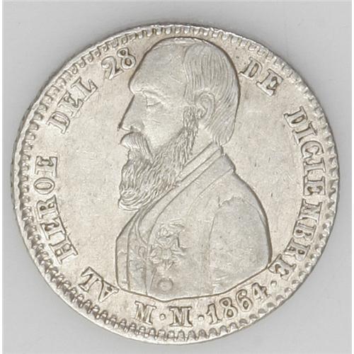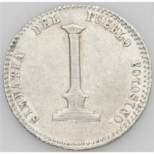 <B>Republic Proclamation 1/8 Melgarejo 1864, </B></I>Burnett 89A1, nicely detailed XF, toned and attractive, rare grade for this type.
